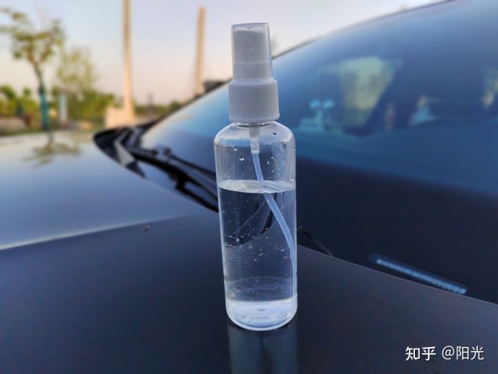 第二步,将防雨剂摇匀,距离玻璃表面15cm处均匀喷洒覆盖玻璃表面(上午先洗的车,傍晚才做的防雨剂防护)。