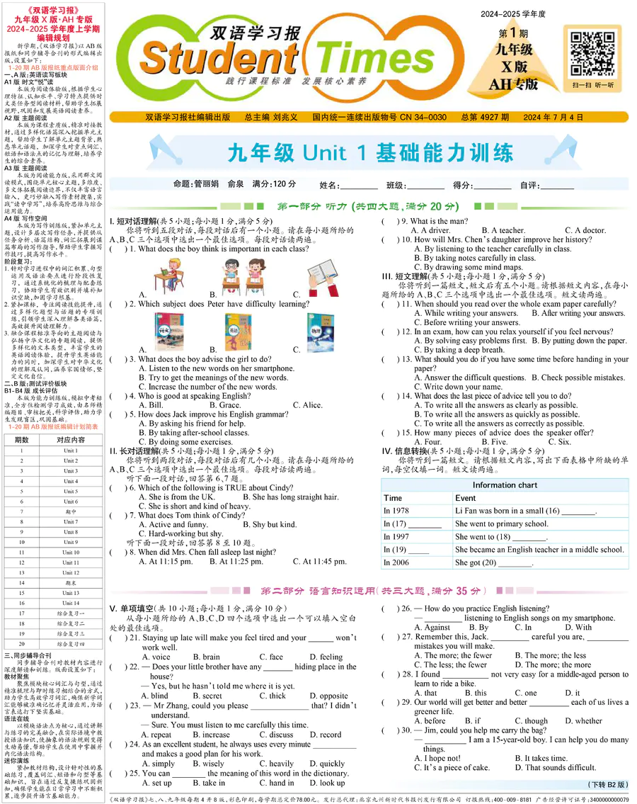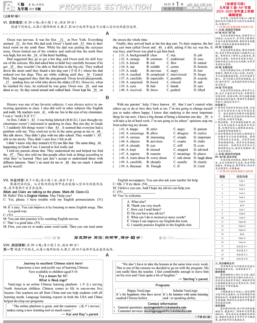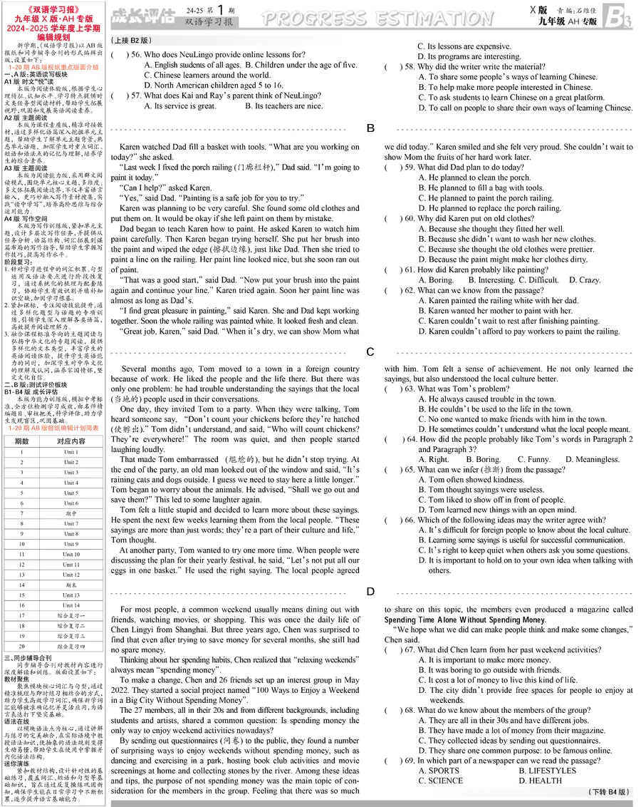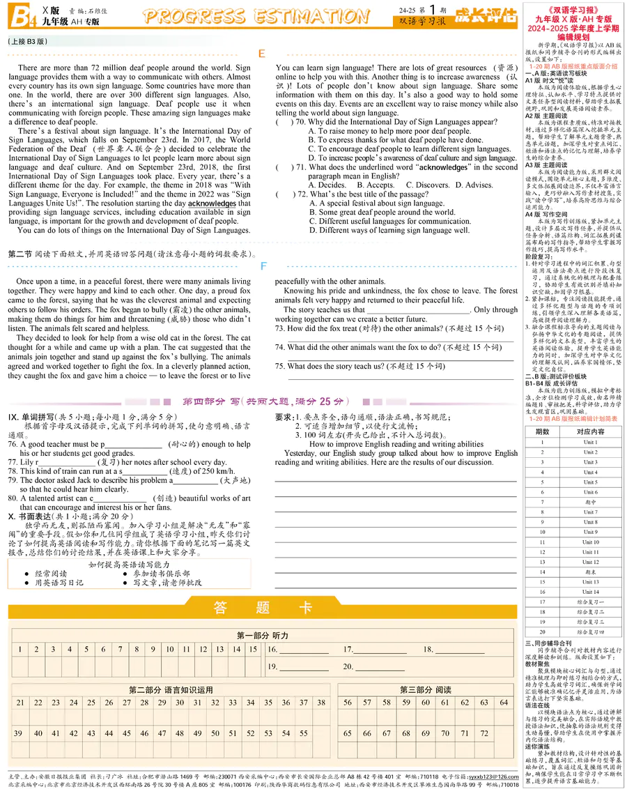 初中英语样报 九年级 X版AH专版 第1期