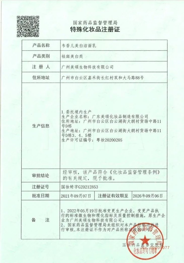 像今天这款韦香儿美白洁面乳,就是经过无数次实验和调整才呈现在我们的眼前,产品质量及效果给大家一个充分保障。