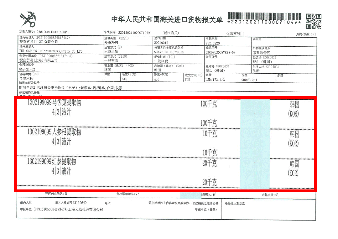 报关单附上,成分安全有保障