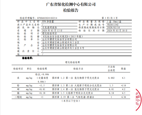 为了让敏感肌用得更安心,它还拿到国家的检测报告,无重金属有害成分,用着更安心。