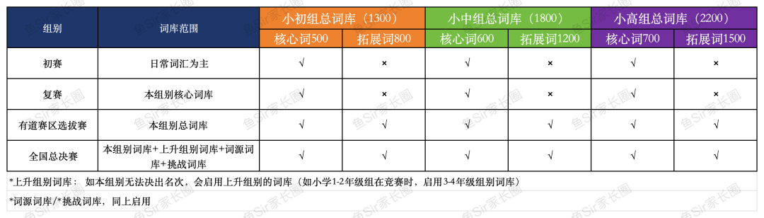 在这一轮竞赛中,除了本组别的词汇外,还将启用上升组别及词源单词的考核范围 。