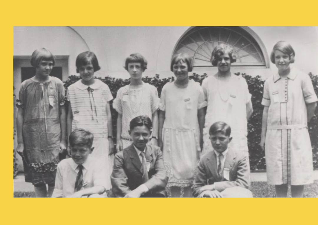 这是1925年举办的第一届Spelling Bee,只有9位小朋友参赛。
