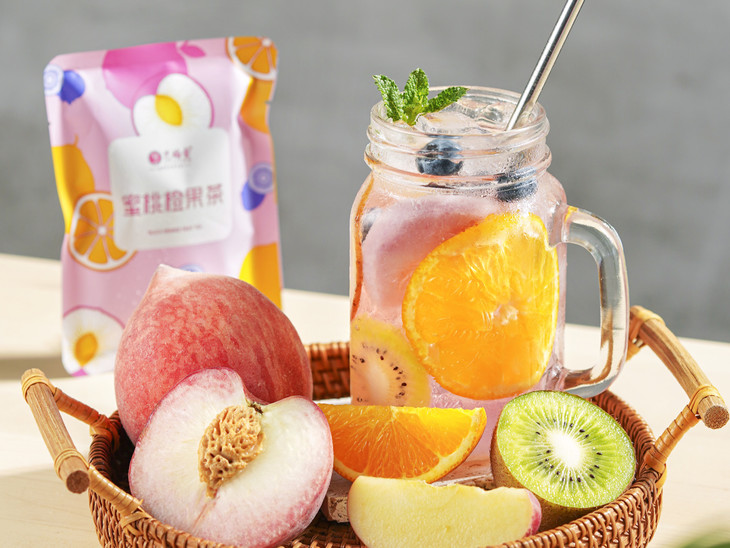 一杯蜜桃橙果茶,超多大片水果,给你更多满足感。可以吃的即饮大片果茶,不添加食用香精。(产品颜色来自蓝莓里面含有的花青素)看得见的丰富饱满,陪你“桃”醉一夏。