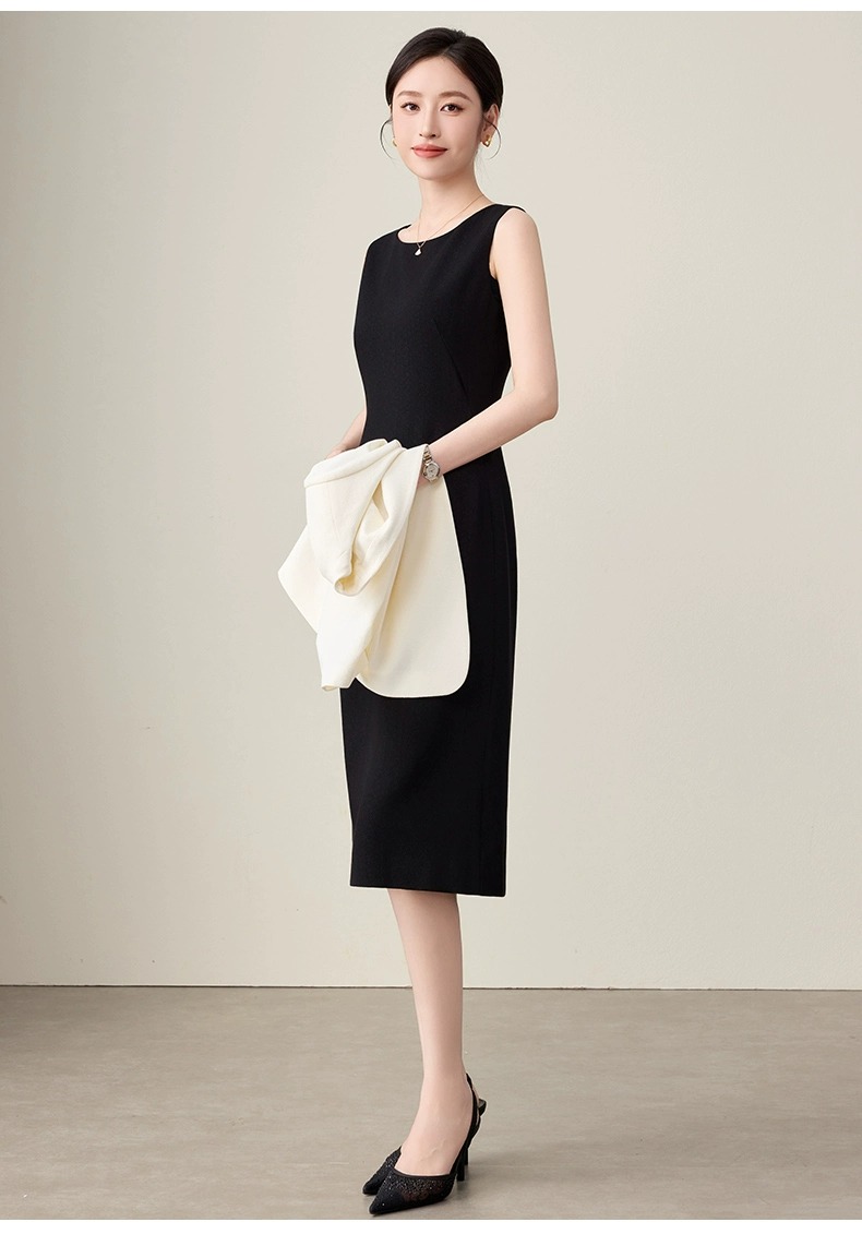 内搭选这条黑色无袖裙绝绝子!侧开叉裙摆拼接雪纺,走路时若隐若现的小性感,连风都跟着变温柔