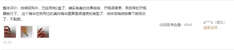 本言言作为一个连烟酰胺都偶尔不耐受的公主皮,内心深处对试用这种功效强劲的精华类产品是拒绝的,但是看在旗舰店一水回购好评的面子上,我就勉为其难用一些吧。