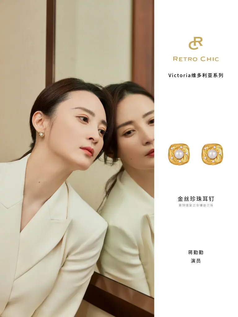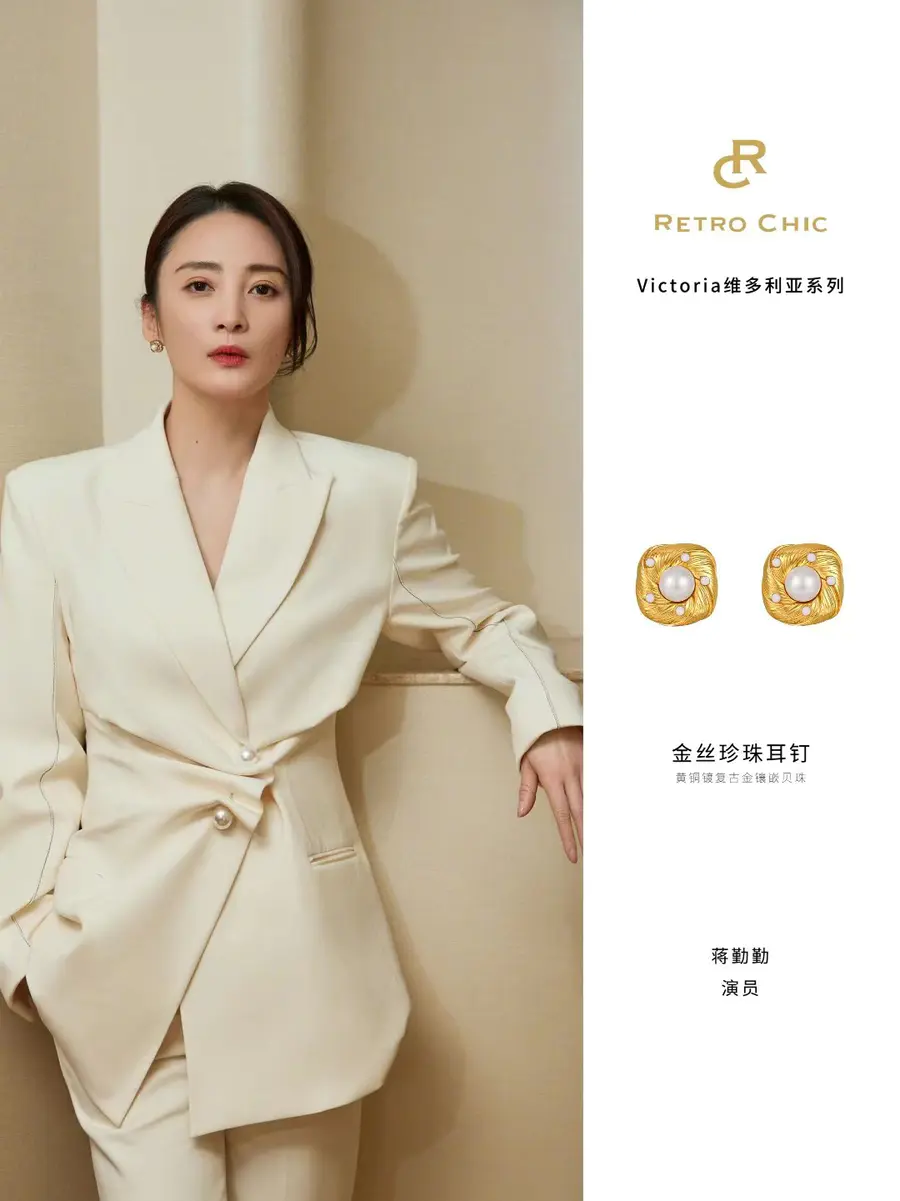 知名演员@蒋勤勤佩戴Retro Chic Victoria维多利亚系列 | 金丝珍珠耳钉,感受来自维多利亚时期的复古和浪漫