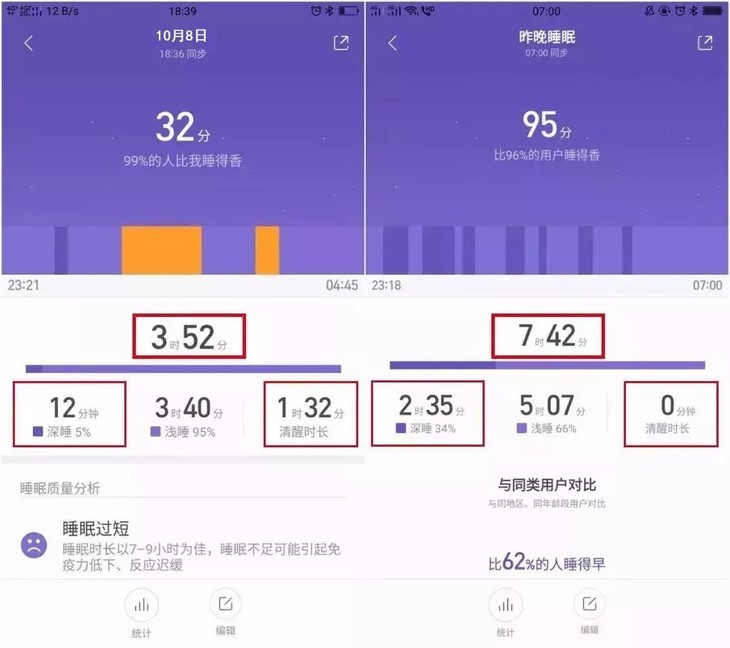 第二天使用睡眠膏,睡眠质量更好,深度睡眠时间达到了2小时。