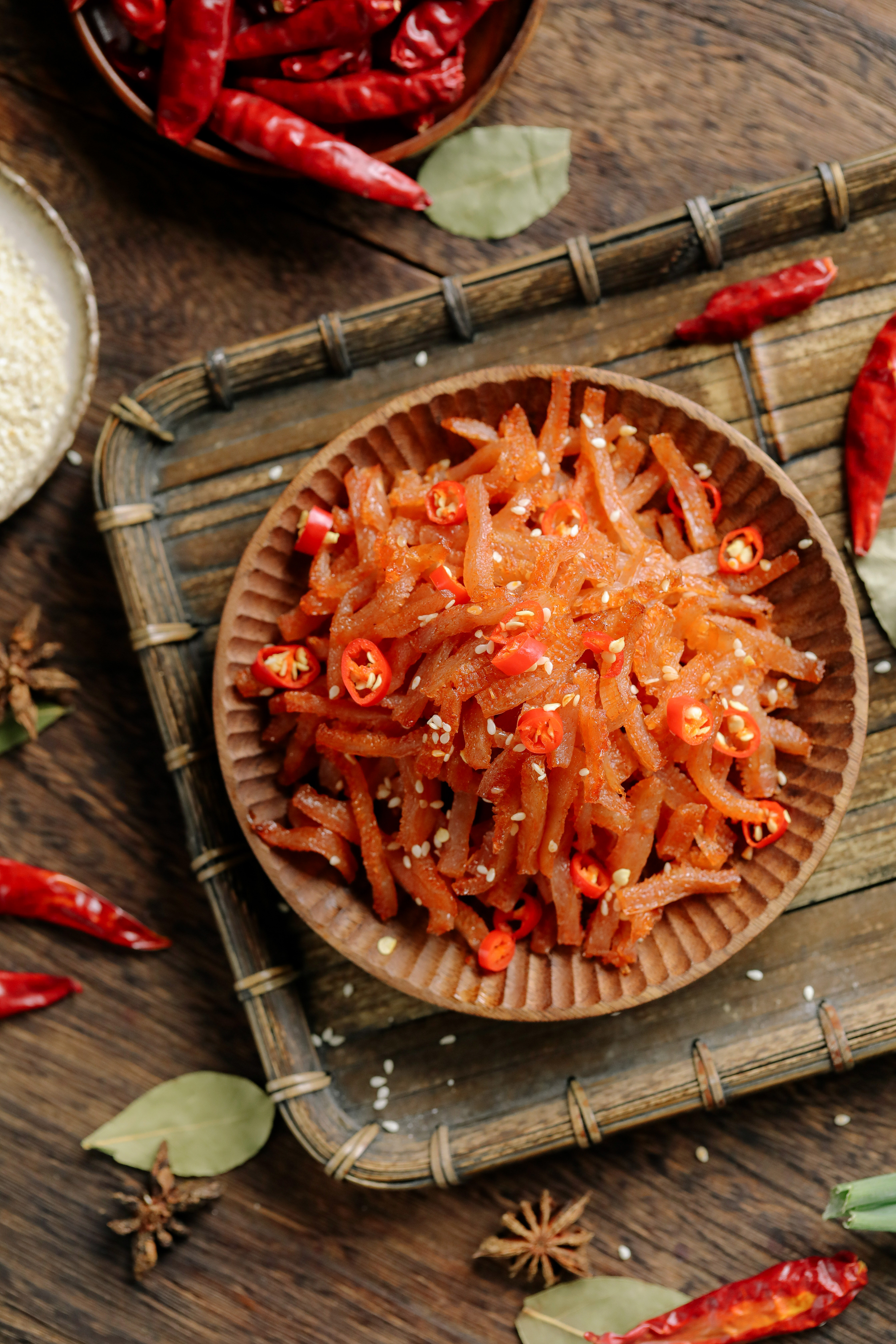 用香辛料和小红辣椒佐味,适口的辣,不刺激