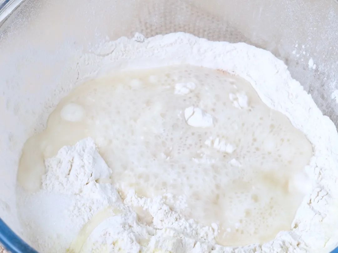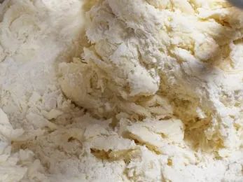 2.加入鸡蛋,水搅拌成絮状,并揉至成团