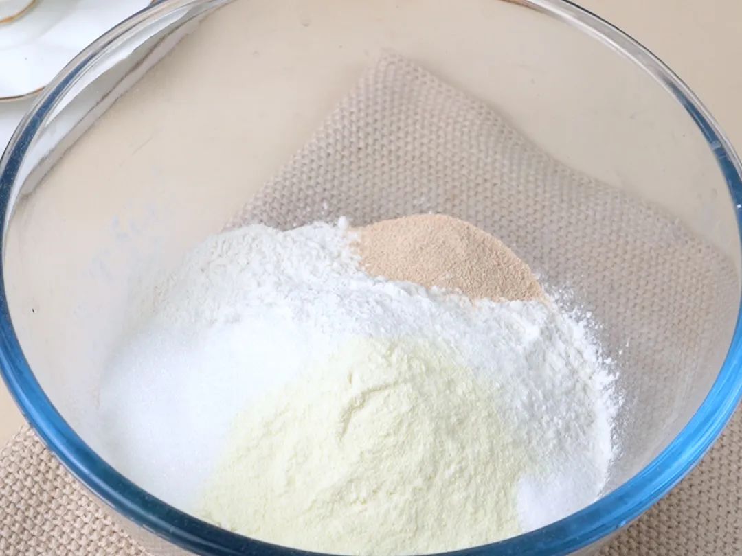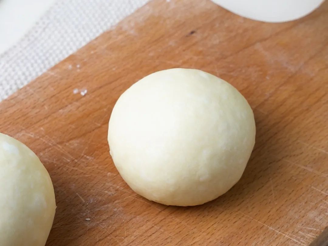 4.取出发酵好的面团,排气分割三等份,并搓圆,松弛5分钟