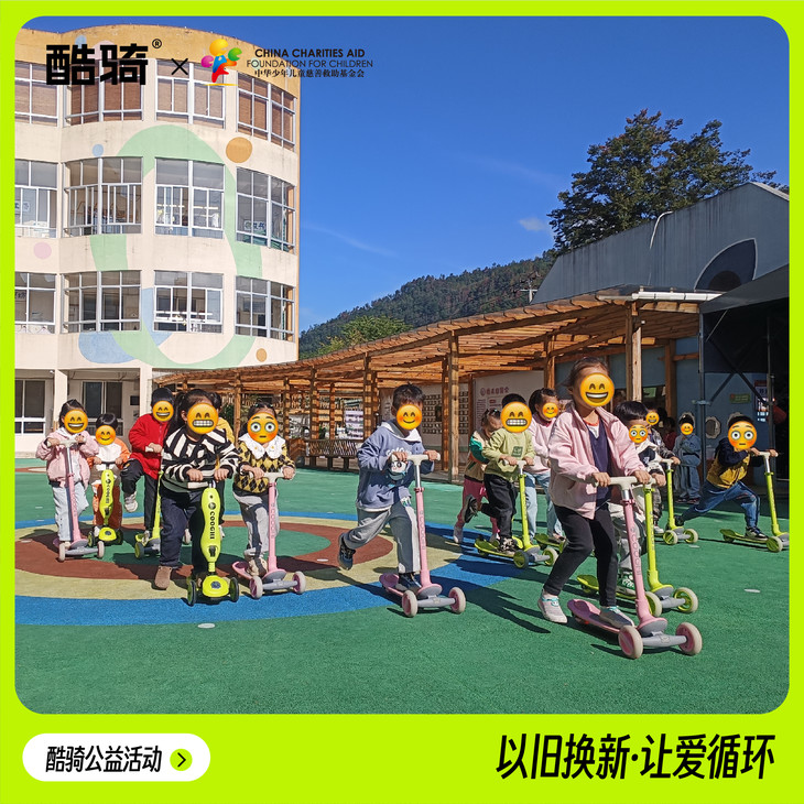 车主们用旧车换新车,旧车再捐赠给需要的孩子循环使用,让闲置车车发挥更大价值,助力山区儿童快乐骑行,陪伴园内百余位留守孩子们健康成长!