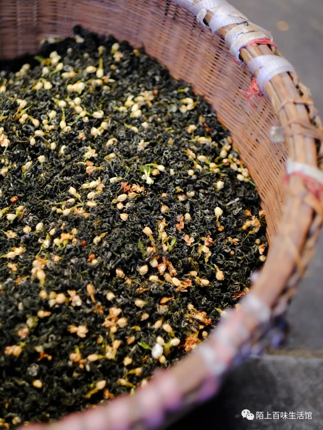 伺花、筛花、促花匀齐开放,筛选出“虎爪状”饱满鲜花。温低则香气不足,温高则蔫黄有青臭。窨花、通花、茶花拌和、静置约6个小时,至次日凌晨4点,期间需熬夜守候,及时通花降温。然后收堆续窨、起花,待散热后,鲜花继续释放香气。等到次日上午11点,芳香吐尽,花朵如“鸡皮皱”,再悉数筛去。窨过的花,都要舍弃,但花魂已入茶骨,留下馥郁花香,悠远迷人~整个花季,魏师傅都要披星戴月地制作花茶!茶中花魂来之不易,这是人与花的较量,也是茶与人的一期一会!