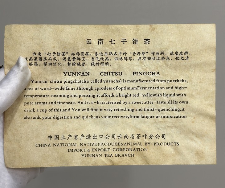 独有的《油光纸》包装记载是中茶公司自己做的记号!