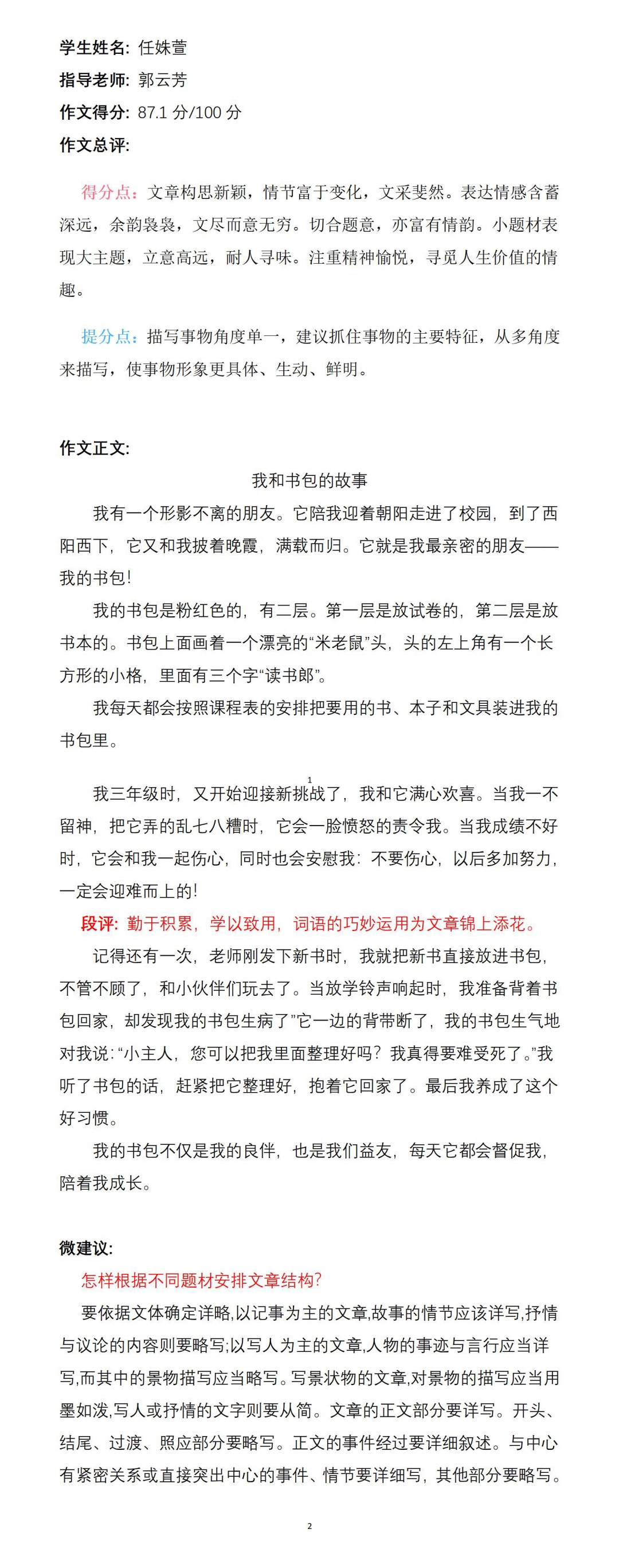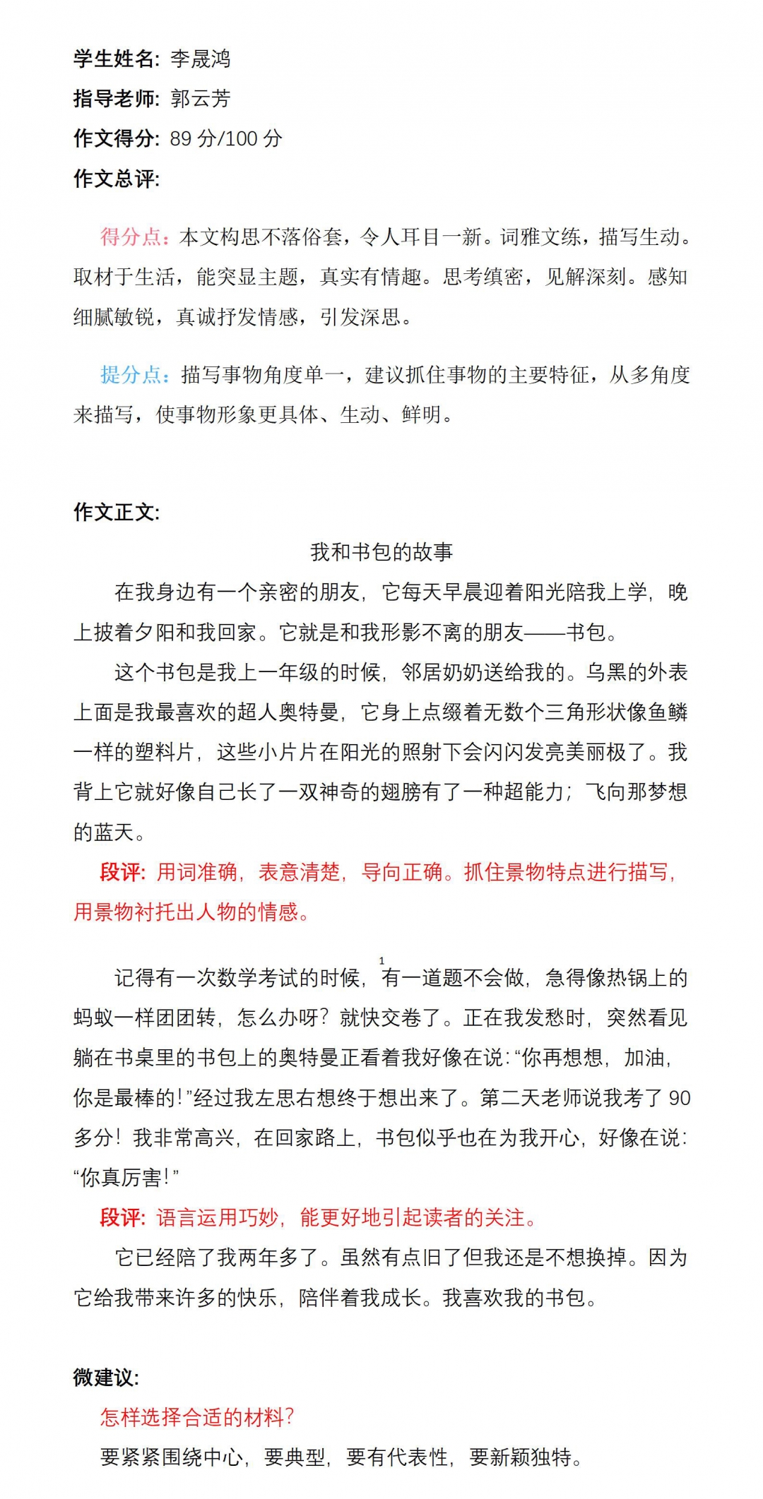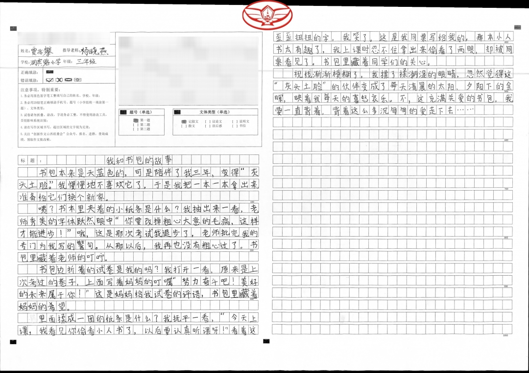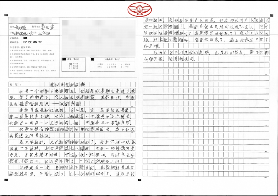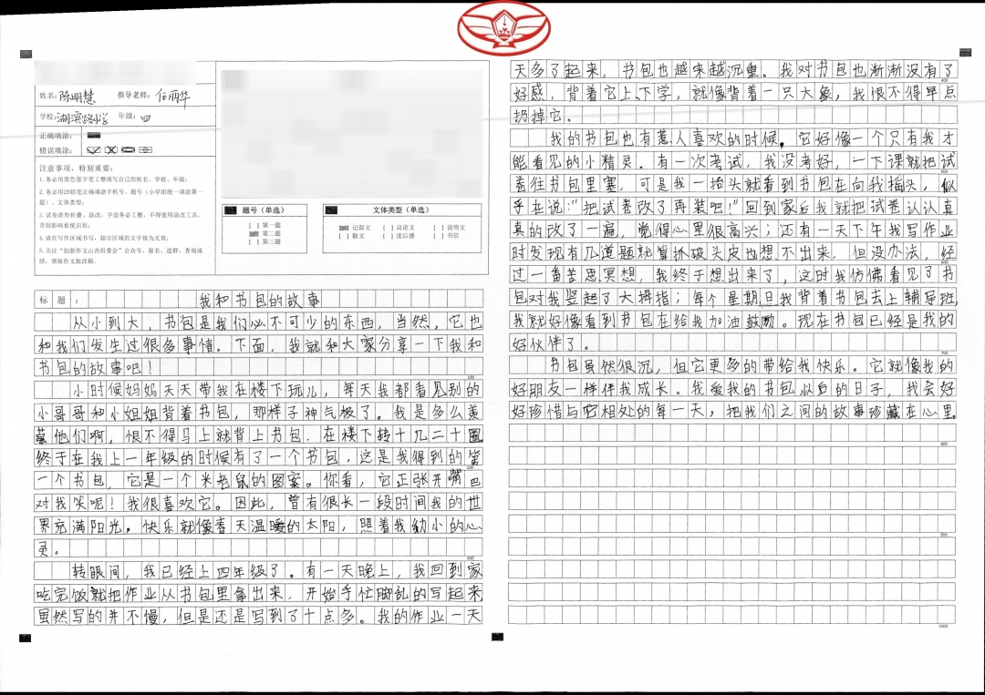 在老师的启发引导下,我将我最漂亮的书包和最难忘的故事写进这篇文章,表达了我和书包之间的深厚情谊和我努力读书的远大理想。