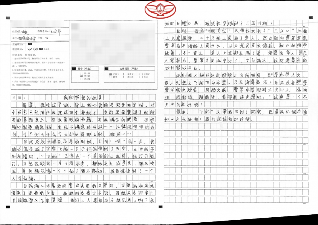 我喜欢阅读各类书籍,特别喜欢读一些想象类的文章,也比较喜欢写这类型的作文,这个题目让我大开脑洞,我想把我曾经读过的一些经典的历史故事写进了我的作文里,于是我终于想出了心中理想的“小书包”。书山有路勤为径,学海无涯苦作舟,加油吧,少年!
