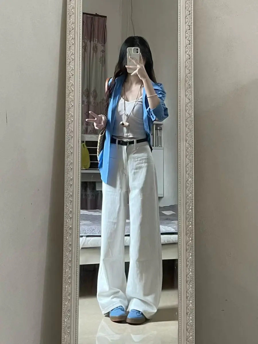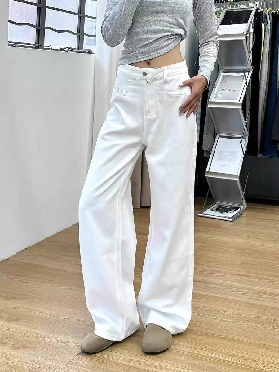直筒版型,藏肉显瘦,修饰腿型,梨形身材也能穿出纸片感!
