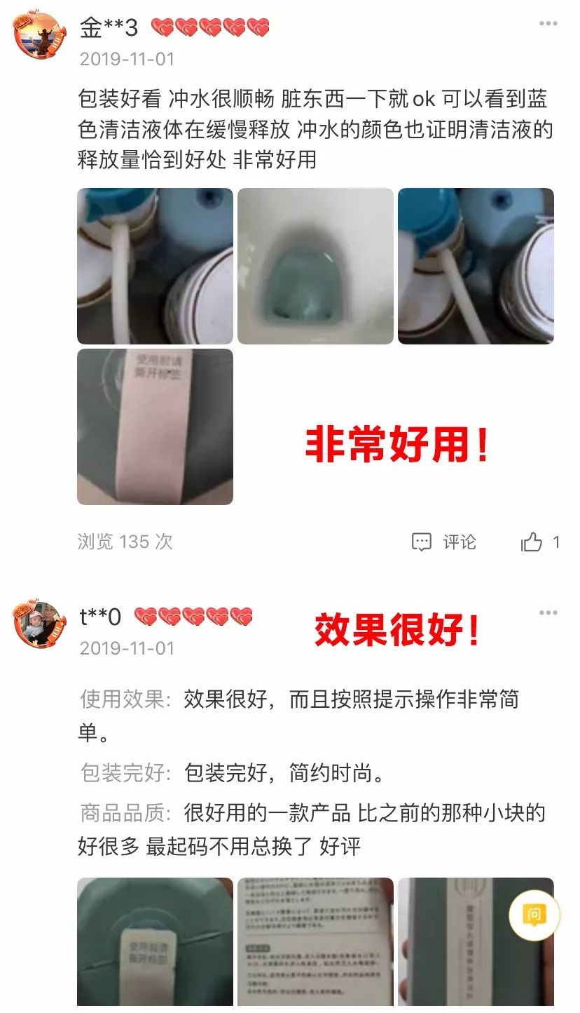 日常家用的蓝泡泡小编也用过,冲不干净不说,还会有残留挂壁等现象。而且1颗顶多只能用3-5天,太不经用了~弊端那么多,是因为蓝泡泡的成分大部分是由各种清洁剂、香精、染料构成,成本低且不耐用~而这个魔瓶却内含乾坤,它在普通洁厕产品的技术上做了升级改造,加入了50%天然植物表面活性剂。这种成分遇水溶解后,很快就会扩散到整个水面,能在短时间内瓦解马桶中的碱性污渍,清洁力比普通洁厕宝高5倍!为了证明它到底能不能清洗掉脏污垢,小编找了个公用马桶做测试:把魔瓶放到了水箱里面,摁下冲水开关。蓝色的清洁剂伴随着水流的涌动,把马桶的边边角角都清洗的很干净,污垢没了~另外,魔瓶还采用了新型凝胶缓释技术,每次在水箱冲水上水的过程中就是一次压力的缓释。49元/2瓶装