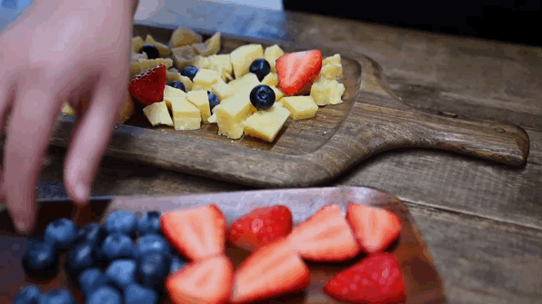 搭配奶酪美味又天然的食材首选水果,清爽甜香的草莓和蓝莓,一道简单美味、酸甜可口的甜品拼盘撑起了整个餐桌,也是让人喜欢上奶酪的入门食用方式。