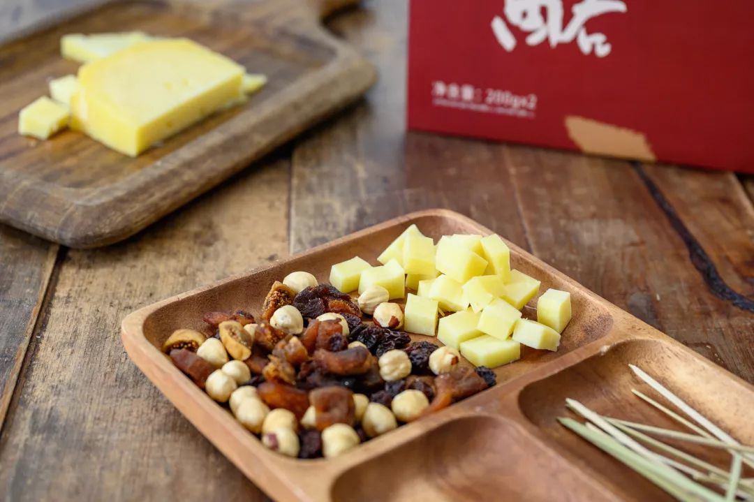 奶酪配果干是最常见的搭配,如无花果干、杏干等。一口奶酪,三五果干,同时放入口中,细细咀嚼,果干的自然清新混合奶酪的成熟饱满,咸香与甘甜共存,开启奇妙美味体验。