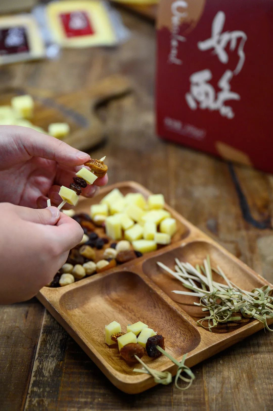 食材:颗蔓天然日晒混合果干、成熟周期为30周的Ouroland奶酪。