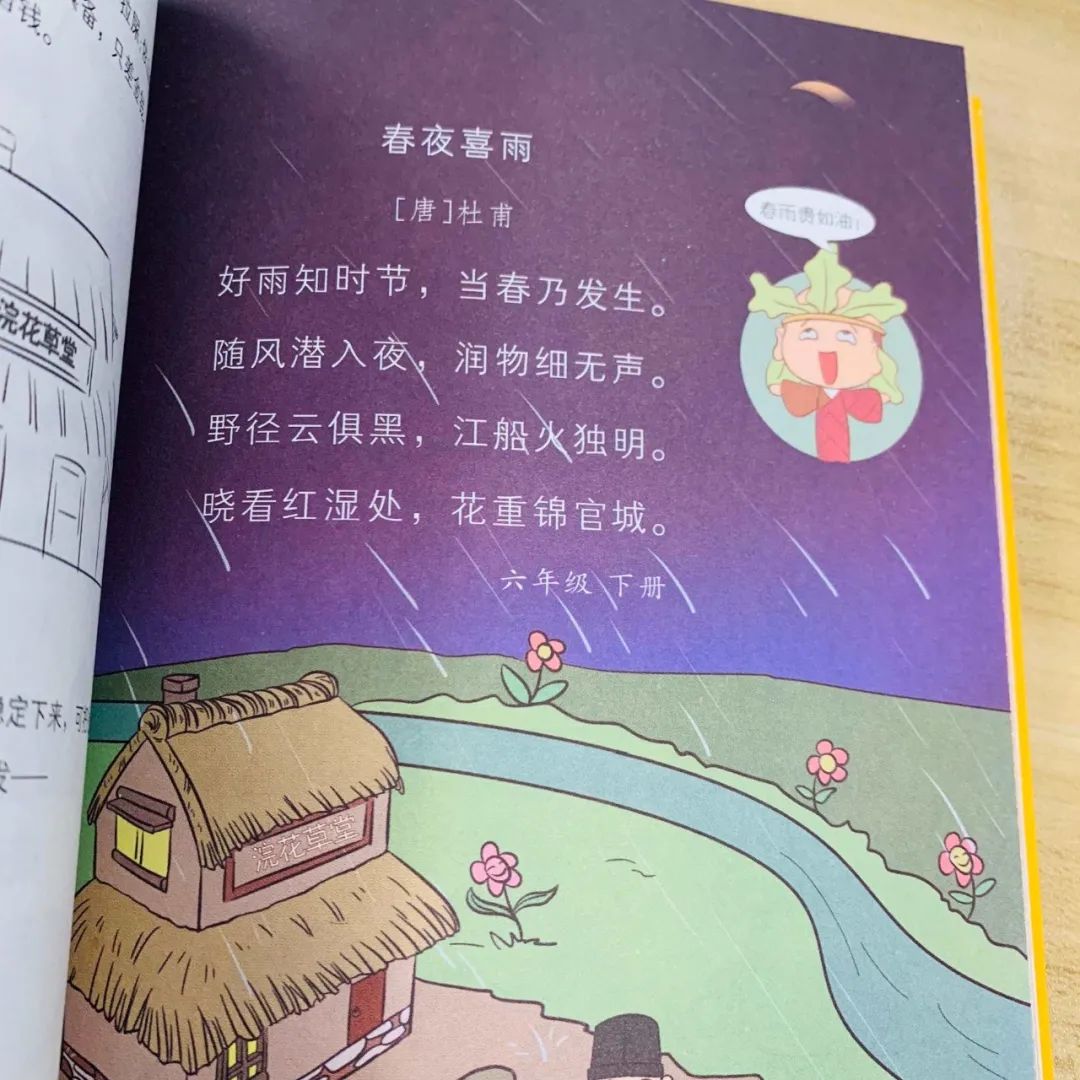 并且这套书涵盖教材重点知识,不脱离课堂,从生字注音、词语注释到诗句翻译、主题赏析,每一个知识点都会被很好的讲解出来。