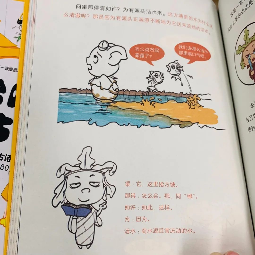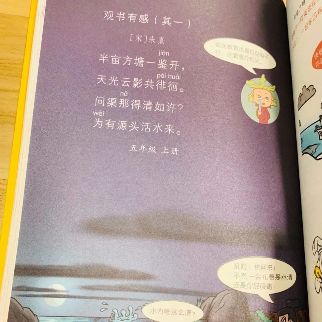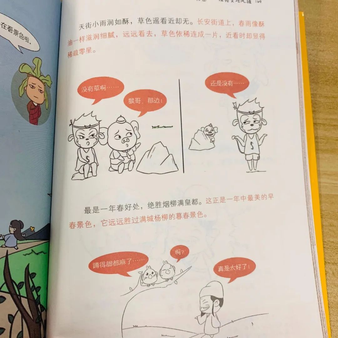 同时穿插着唐僧师徒四人的诗词课堂,让孩子在看漫画的过程中自然而然的学习到关于这首诗词的知识。▼