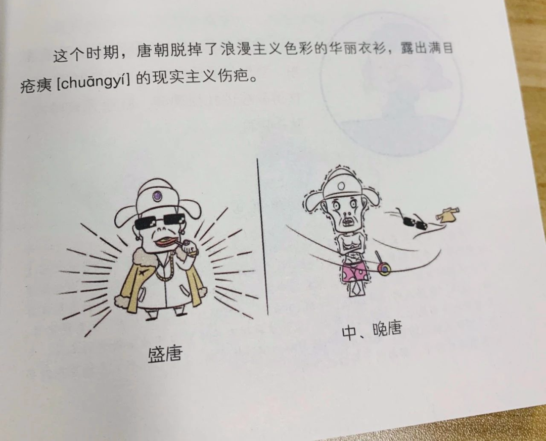 盛唐和中晚唐通过漫画人区别开来,非常有趣。▼