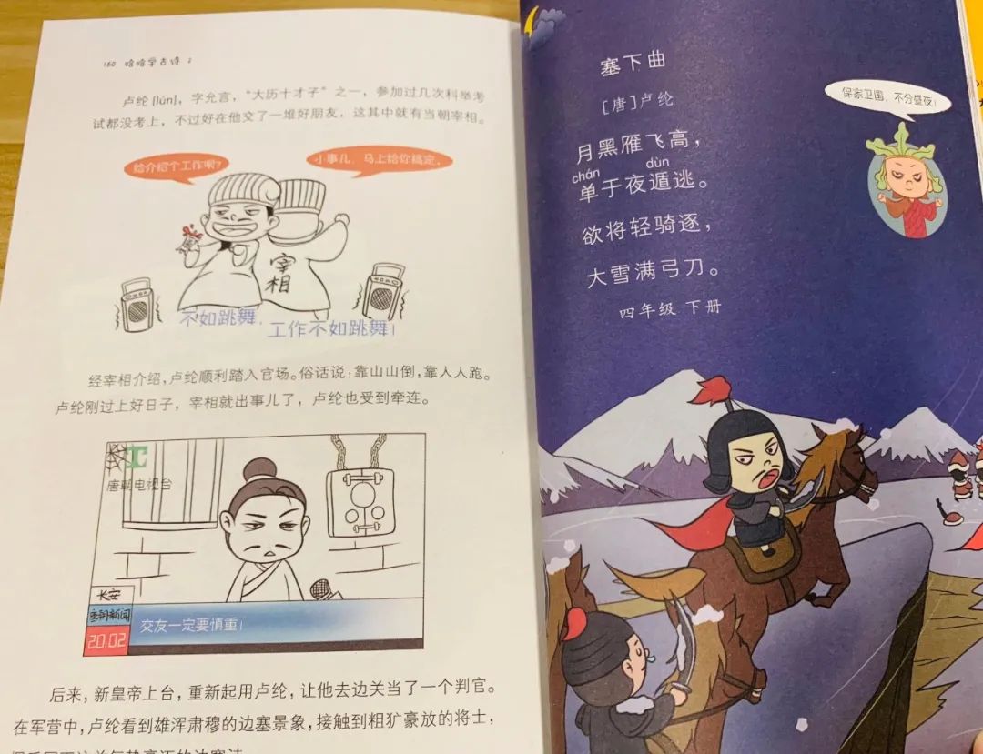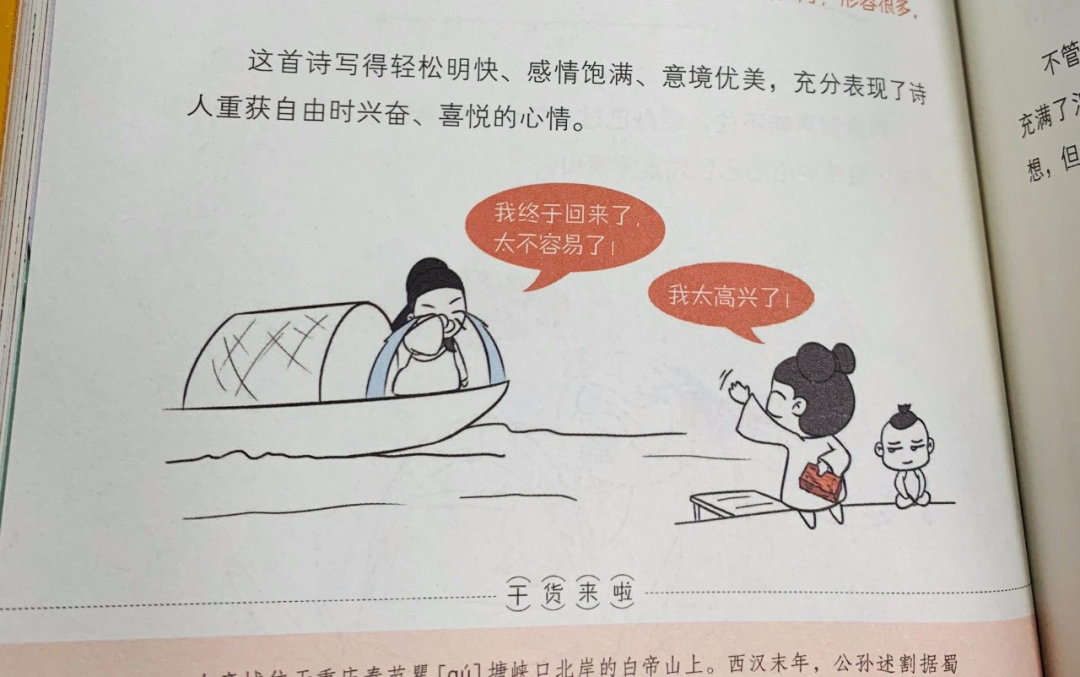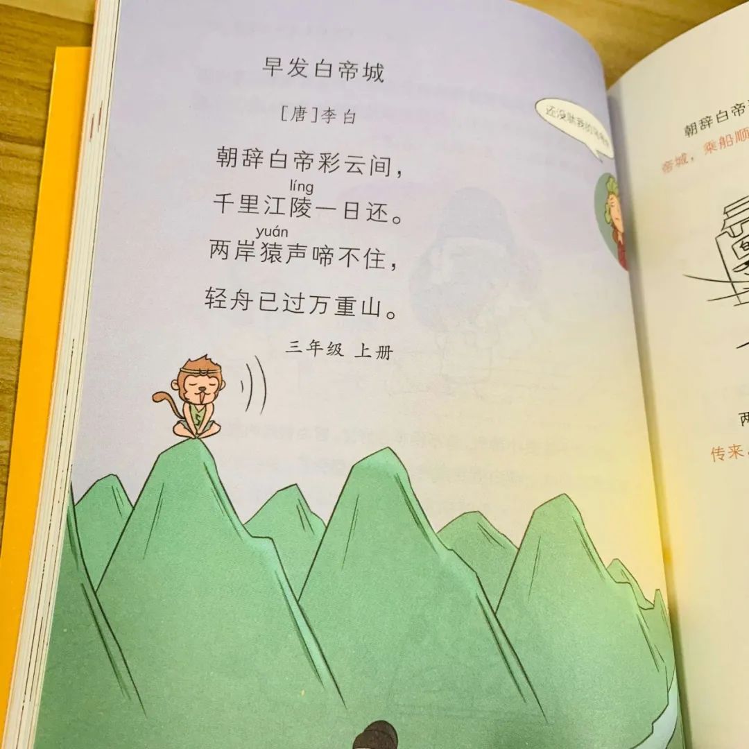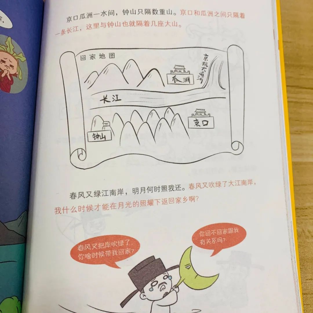 通过这种方式,孩子能很好地理解每首诗的意义,对每个句子的印象也更加深刻,不仅成功背了诗,还能学到许多历史人文知识,一举两得。