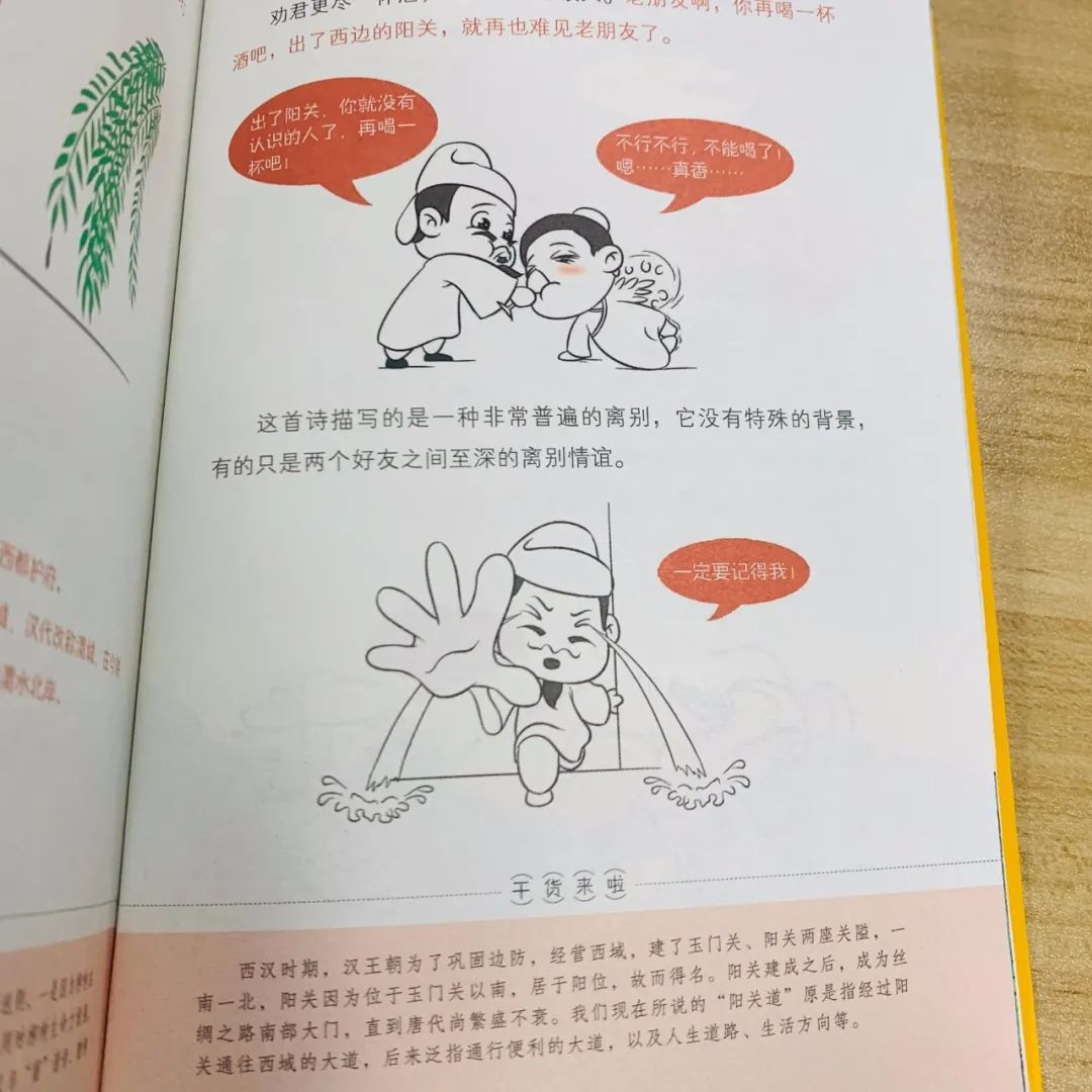 通过这种方式,孩子能很好地理解每首诗的意义,对于古诗的印象也更加深刻,不用特意去记,也能知道这首诗讲的是什么感情,有着怎样的历史。