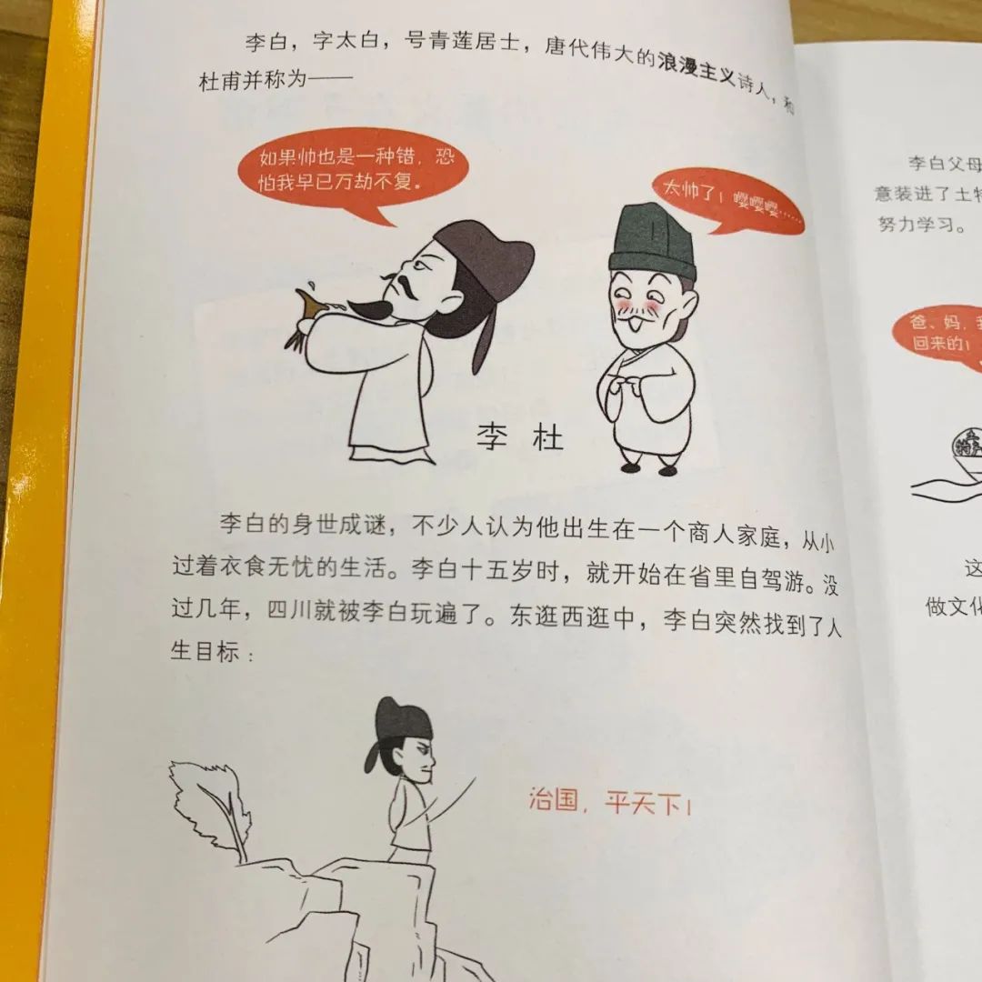 再比如前面提到的“李白”,浪漫主义“诗仙”的形象,这里有趣的漫画讲解了李白的生平背景。▼