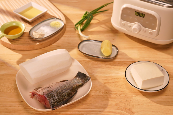 1、鲫鱼洗净改花刀,放盐、姜丝、料酒,腌制10分钟。2、白萝卜洗净切丝,豆腐洗净切小块。