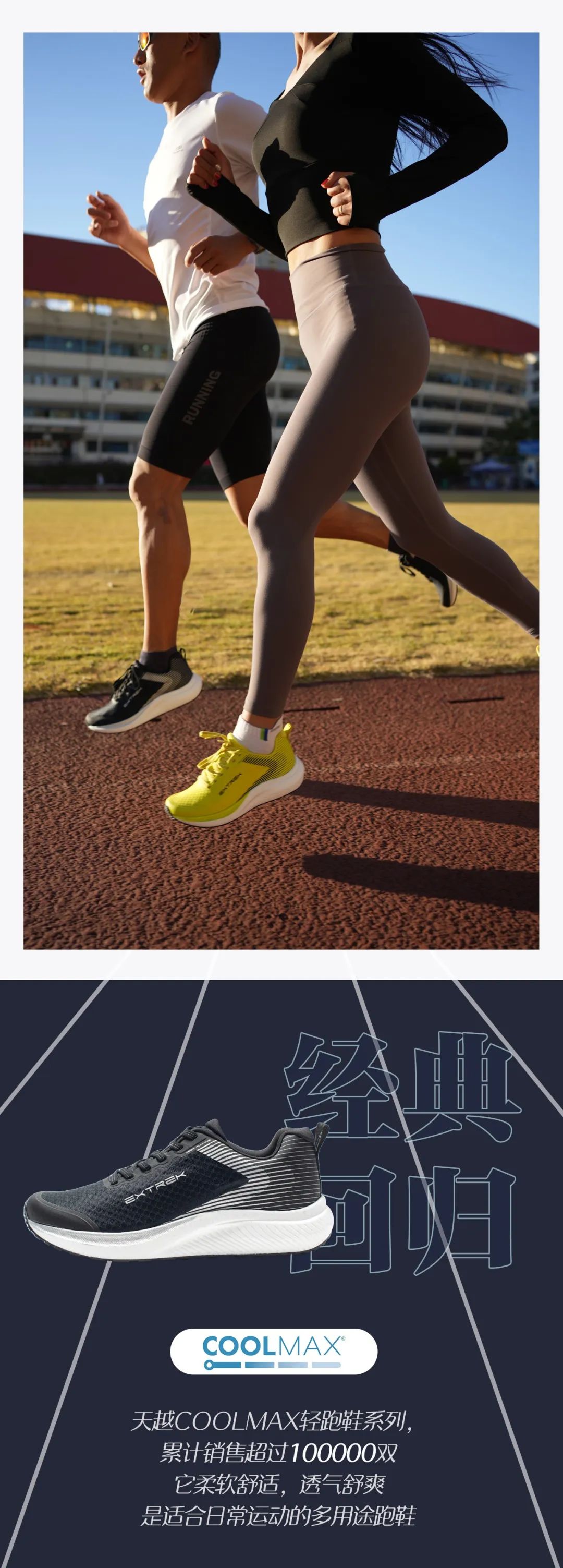 天越超临界氢弹跑鞋,作为天越COOLMAX轻跑鞋的进阶款,保留了部分上一代的经典配置