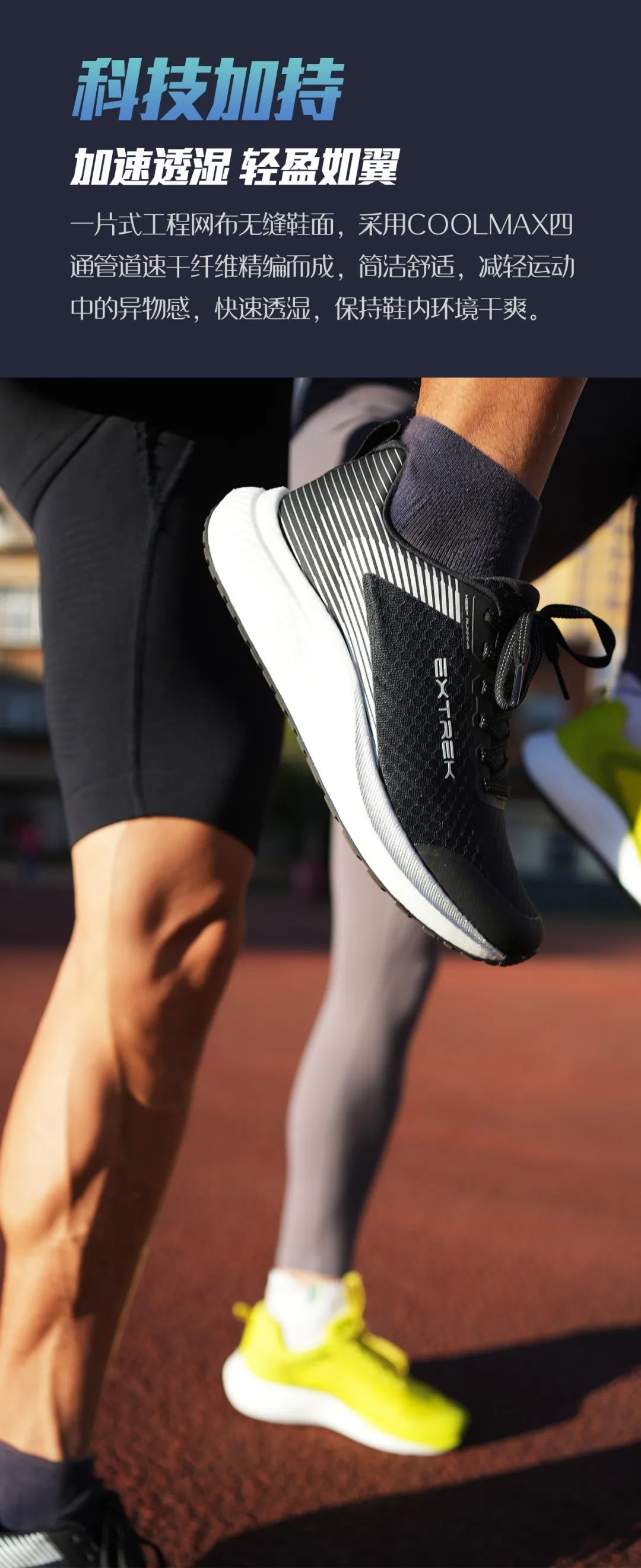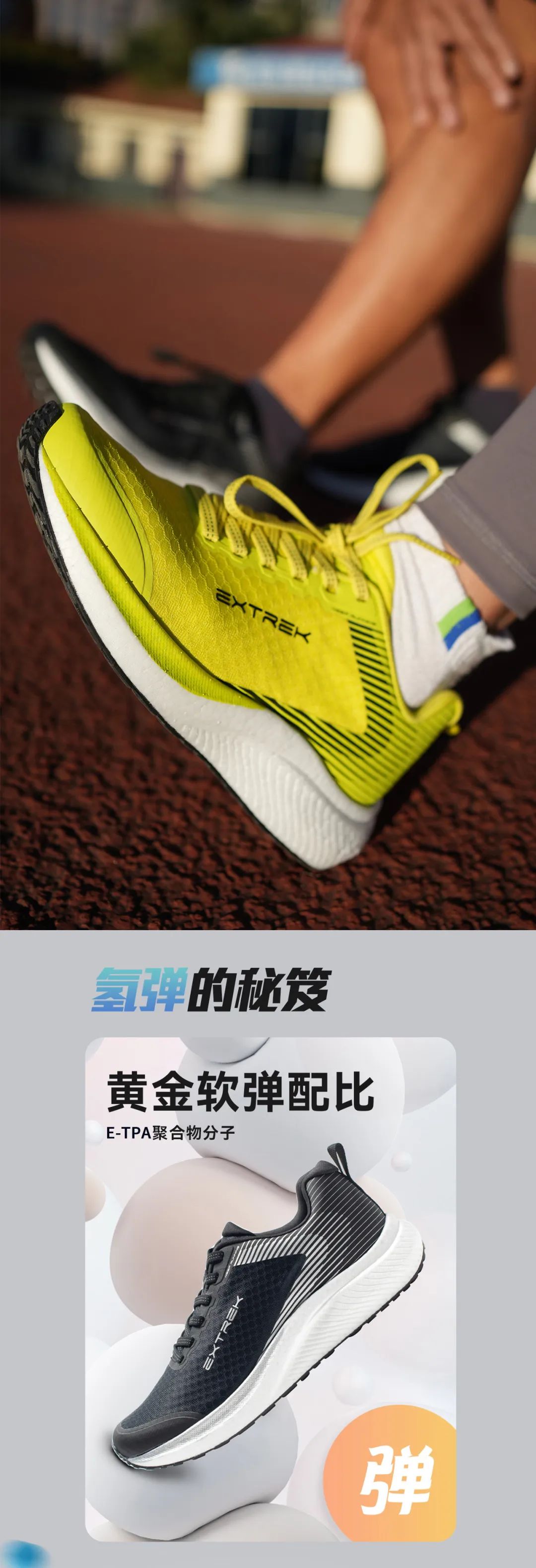 1、专利双碳管,防扭脚跑起来更稳定! EX FORM中底,轻量回弹,脚感舒服!