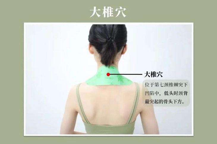 每天对大椎穴按摩100~200次,方法为用食指、中指按住穴位,用力点按。常按摩大椎穴,可以提高提抗力,预防感冒。