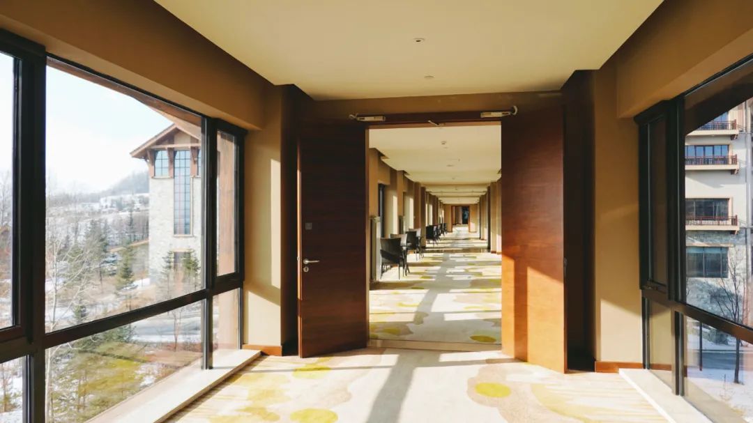 长白山万达喜来登度假酒店与威斯汀靠一个空中长廊相连,共享玩乐基础设施。廊桥风景不错,特意摆放了休息的桌椅,是赏风景的好地方🌨下午茶也可以安排在这里。