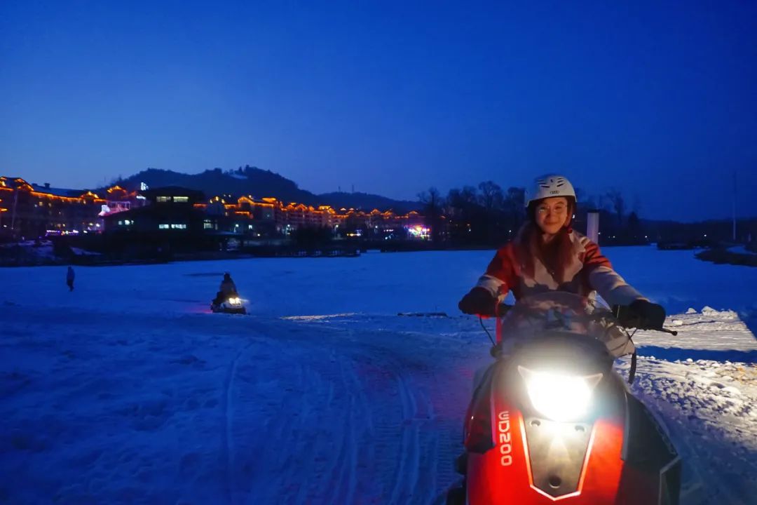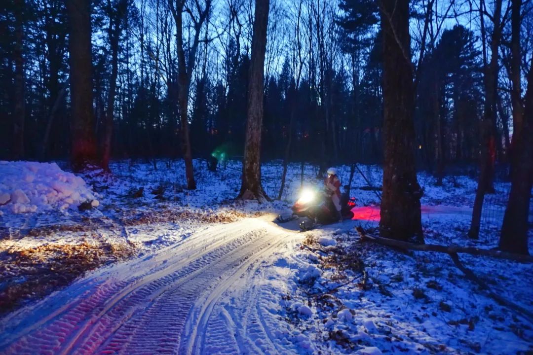 晚上最适合刺激的游戏了,雪地摩托就在佛库伦湖边,我们特意约了将近太阳落山的时间来体验黑夜林间穿梭的刺激,这是白天没有的感受哦~