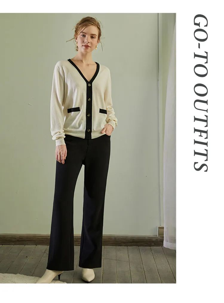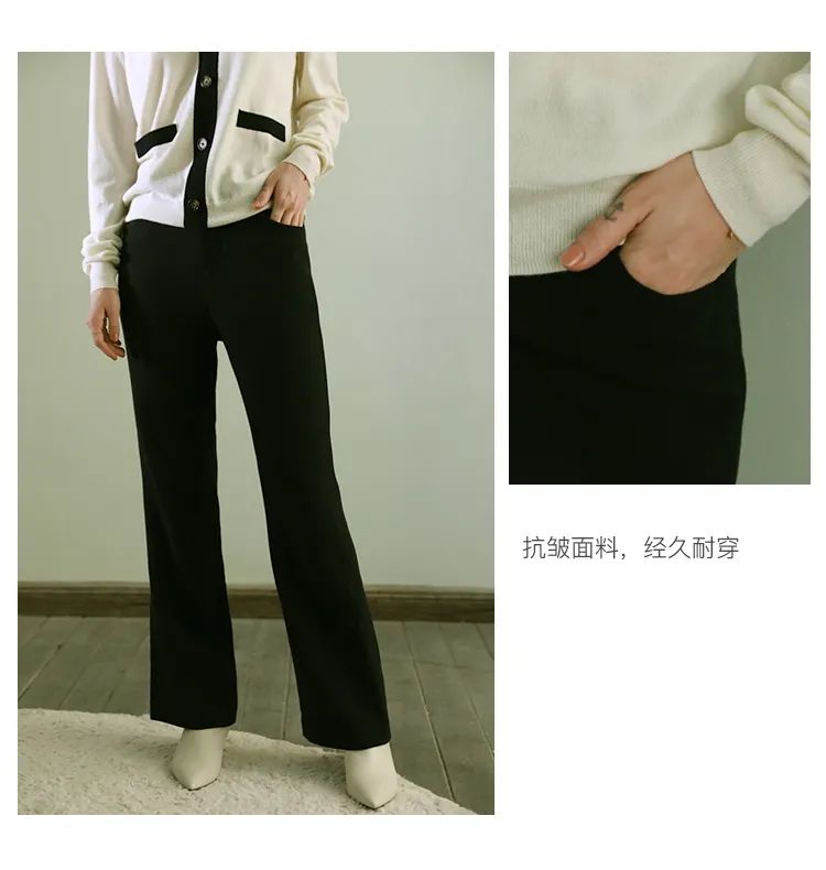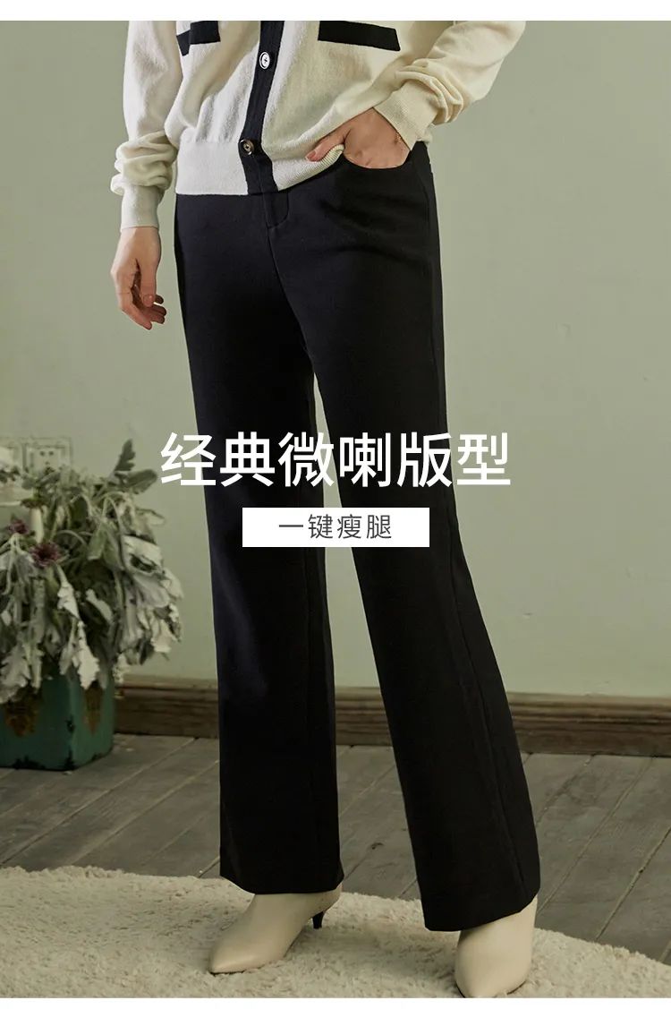 这款优雅基本款微喇长裤,中高腰的微喇版型,