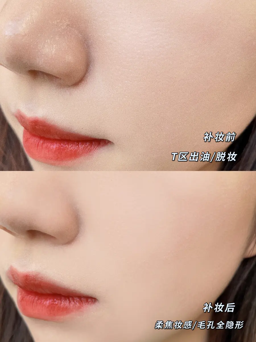 👉功效略微不同,粉饼是定妆+补妆,蜜粉主要是定妆