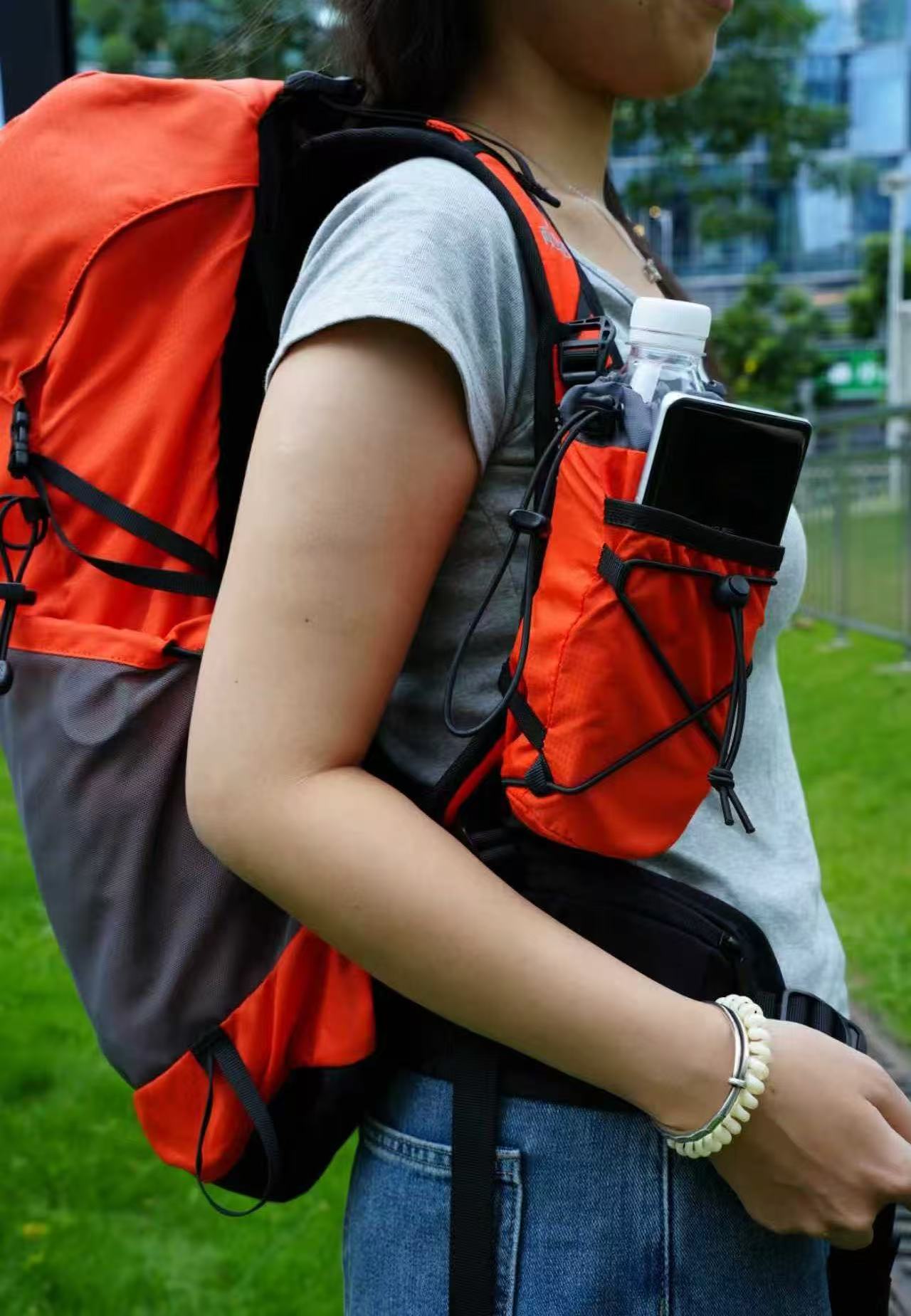 ②科学分压设计:可调节胸带与腰封将重量从肩膀转移至髋部,减少肩部压力,提升长时间背负的舒适性。