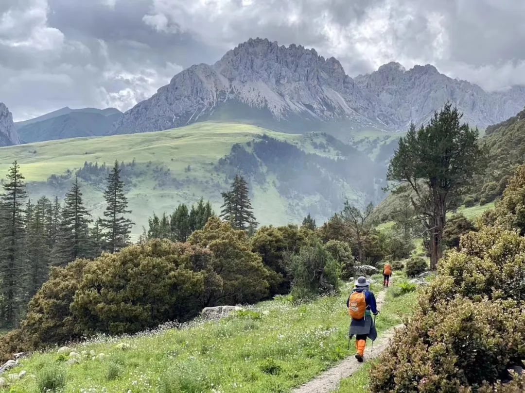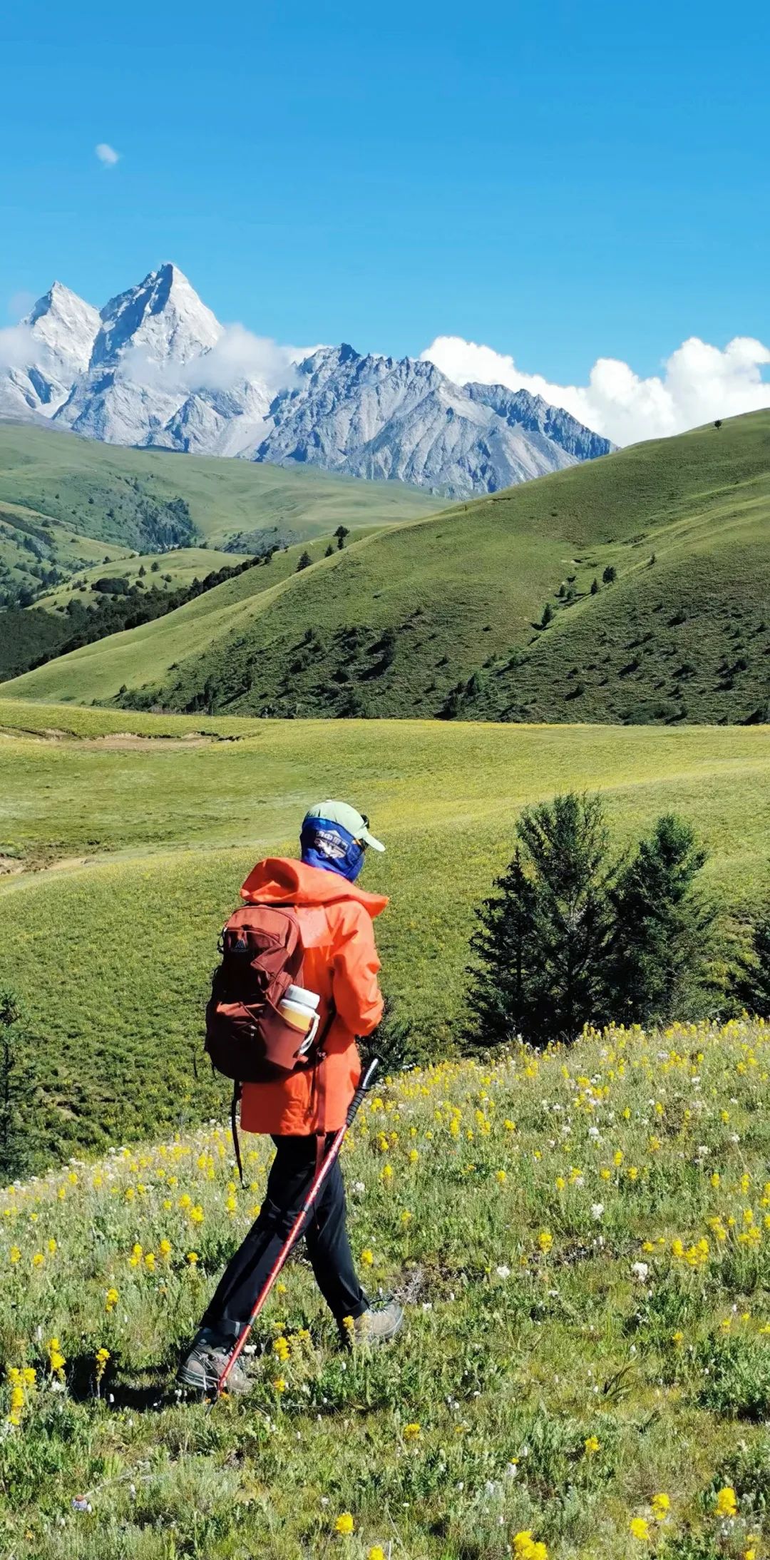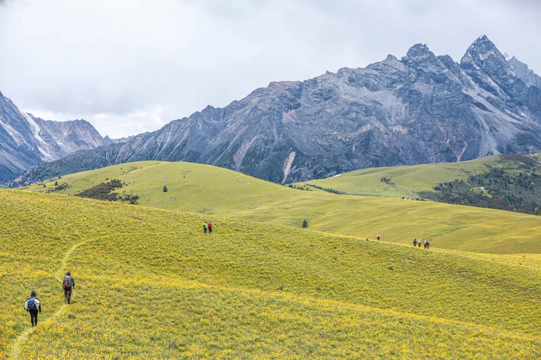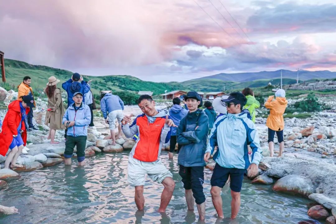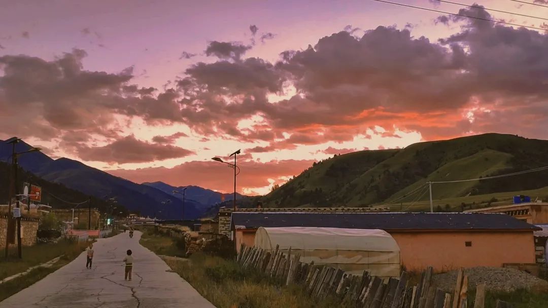 图片@候鸟 格聂、措娘卡、营地同框图最终没有等到日照金山,意外的是,夜幕降临前的霞光为格聂披上粉紫色的华裳。万物都笼罩在这浪漫的天色里,玫瑰色的云,和草,和藏族协作们跳锅庄时幸福的脸。