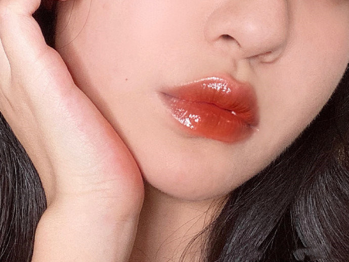 亮面的玻璃唇质地光泽感很好✨不会染唇