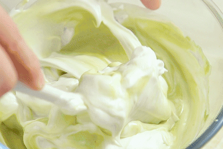 取1/3蛋白与抹茶蛋黄糊搅拌均匀