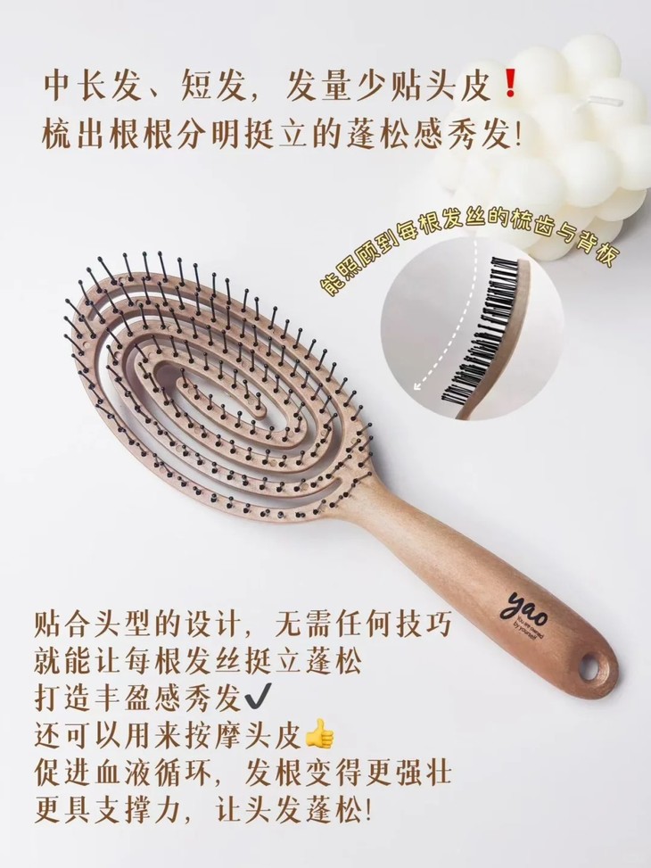 发现yao按摩梳拿到手里明显的上乘质感从发根开始疏通,缠结的头发可以轻松梳开,头皮的发油被带到发梢,梳完发尾顺滑有光泽。