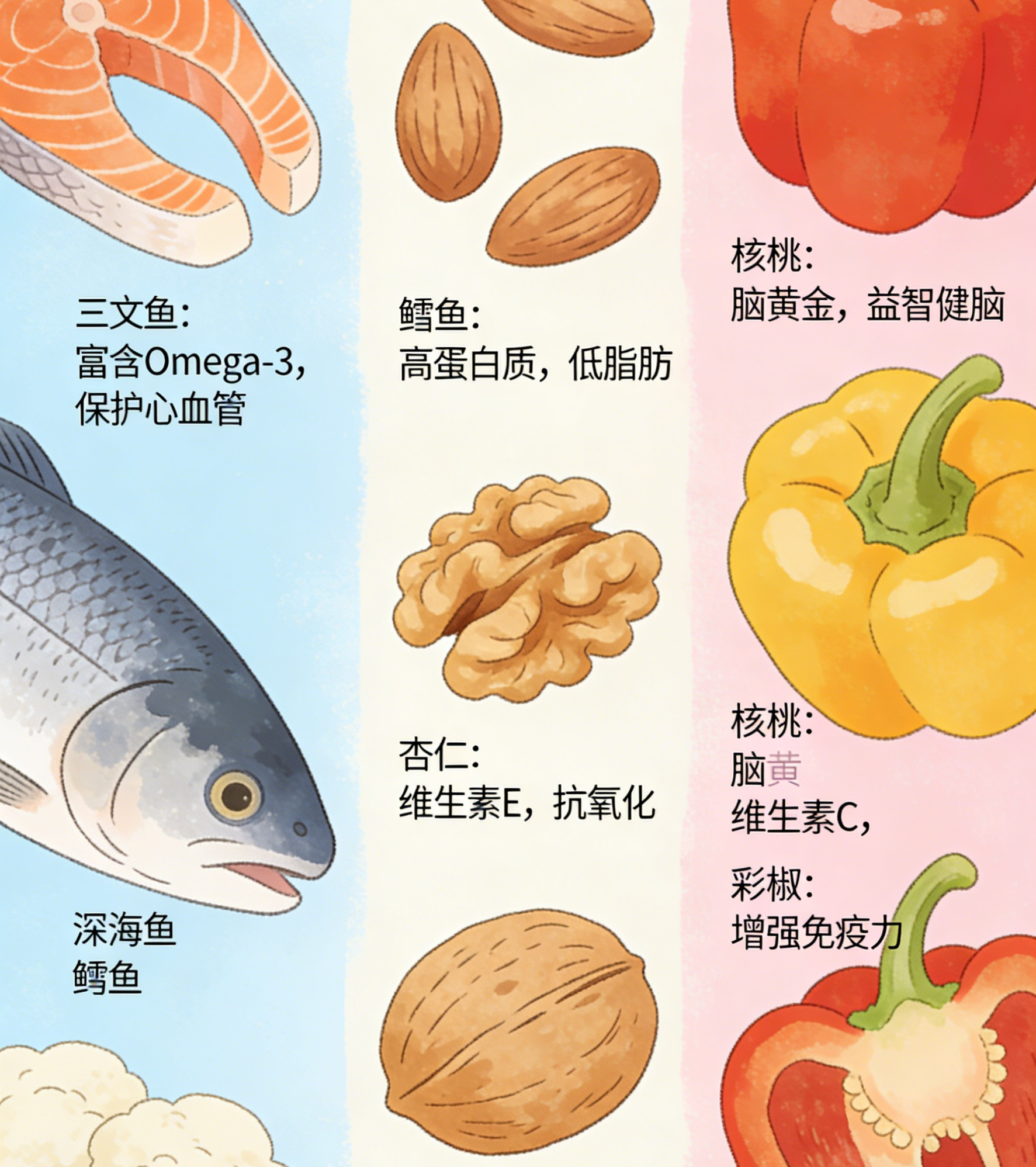 除了补充小分子胶原肽(胶原蛋白饮),饮食需补充“胶原合成原料”——优质蛋白质(提供氨基酸)、维生素C(促进胶原交联)、锌(激活胶原合成酶)比如: