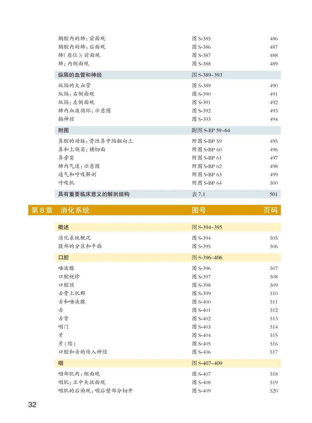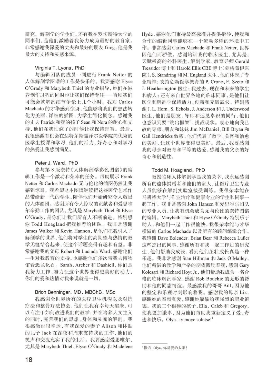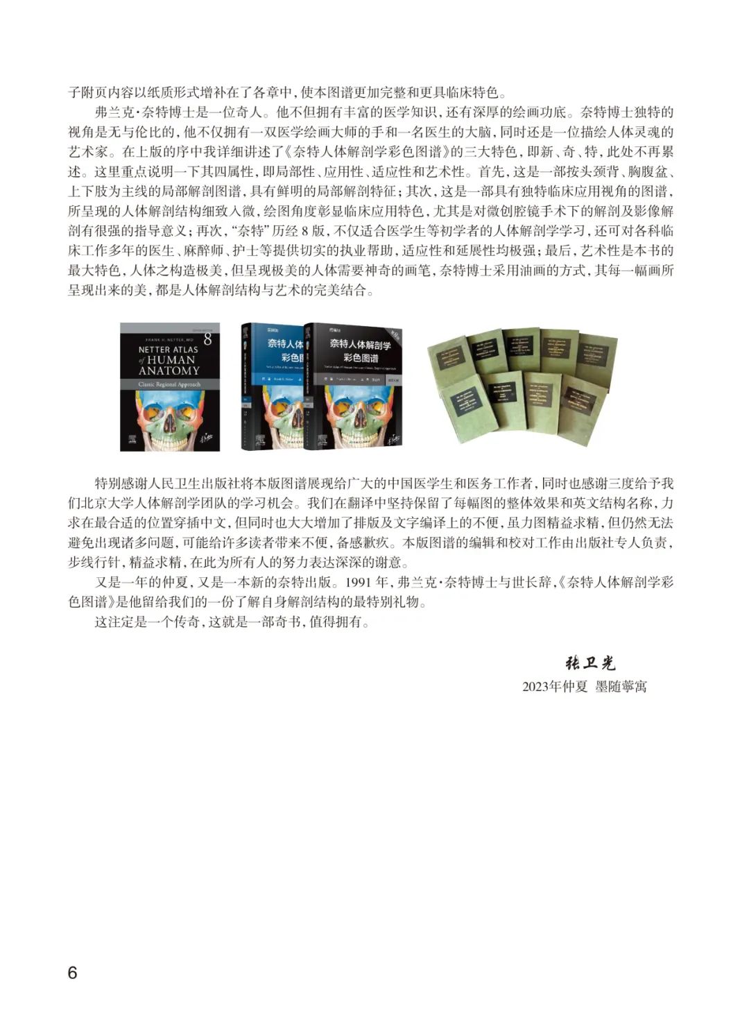 第8版英文名词接轨国际解剖协会联合会采用的《解剖术语》(Terminologia Anatomica)(第2版)中收录的医学术语,同时保留了部分常见的临床同名和旧术语,以使表述更清晰。此外,通过使用缩写减少页面上标注的文本量,同时最大限度地增加标注信息,且专注于与图片主题最相关的标注。汉英对照版在密集的信息量基础上,再次优化排版,力求呈现更好的阅读体验。