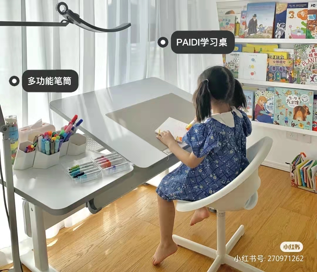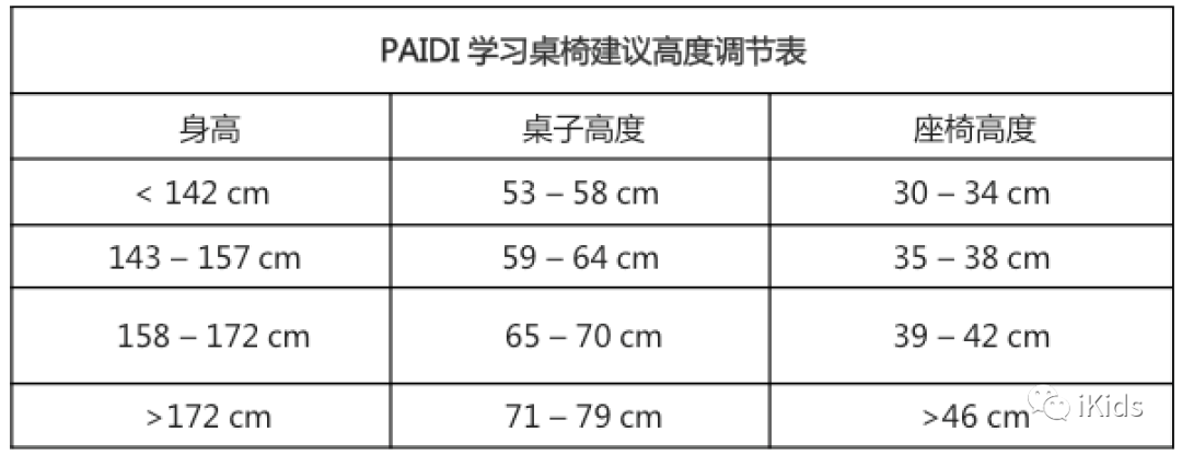 另外,要确保孩子学习坐姿正确,PAIDI倡导“三个直角”。达到这样的要求,必须是专业的儿童桌椅才可以辅助孩子保持正确的坐姿。