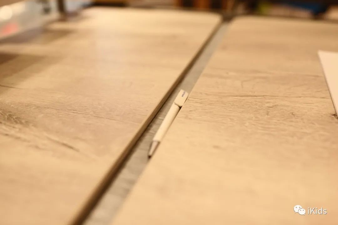 整张桌子全部是圆角,光滑如镜。抬起来的时候会发现,哪怕倾斜起来的桌面,也都是圆角,不会发生磕碰。