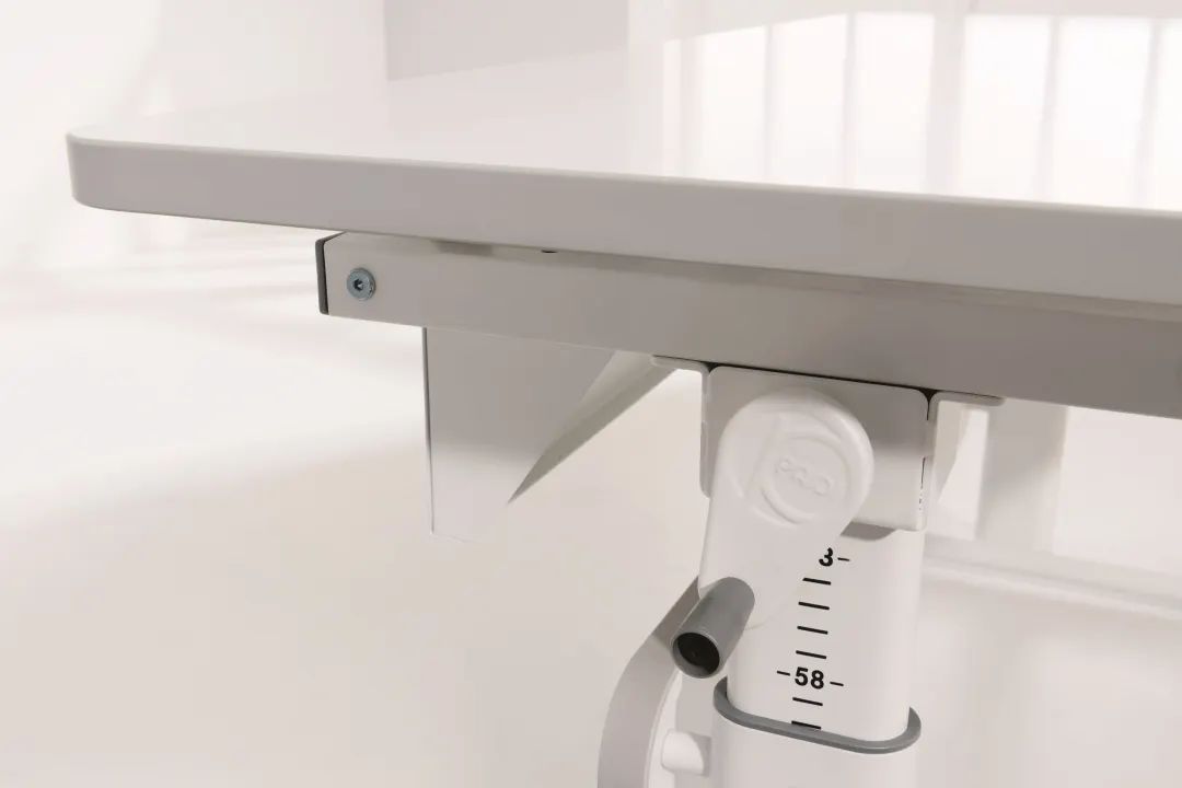 机械式升降,提供更安全更稳定的升降体验,同时也更耐用。轻轻转动机械手摇杄,即可根据孩子身高轻松调节桌子高度。高度可调节范围53cm-79cm,可从3岁使用到成人。调整时可以参考桌腿大大的刻度标示。
