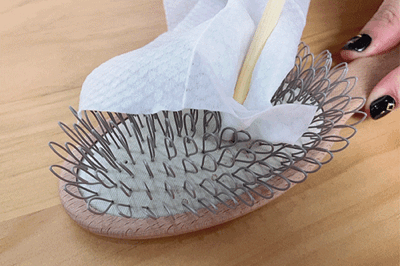 之前有人来问气垫梳怎么清洁,这把清洁也不麻烦:湿纸巾+长棍子/牙签就能把贴在气垫的脏东西抠出来。